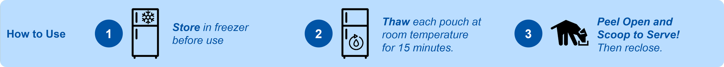 A blend of quality ingredients you can see, served from a multi-serve, scoopable, stackable, and resealable tray. Fresh food made convenient and eco-friendly.